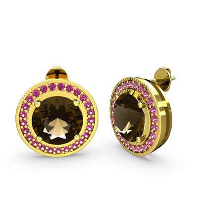 Rodolit garnet ve dumanlı kuvars 14 ayar altın küpe