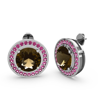 Rodolit garnet ve dumanlı kuvars 925 ayar gümüş küpe