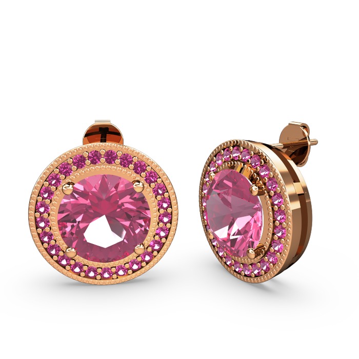 Rodolit garnet ve pembe kuvars 14 ayar rose altın küpe