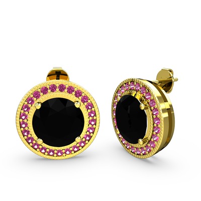 Rodolit garnet ve siyah zirkon 925 ayar altın kaplama gümüş küpe