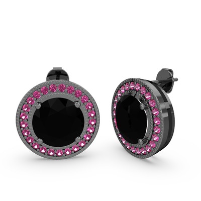 Rodolit garnet ve siyah zirkon 925 ayar siyah rodyum kaplama gümüş küpe