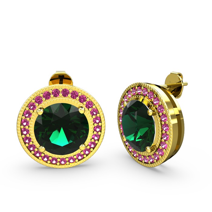 Rodolit garnet ve yeşil kuvars 14 ayar altın küpe