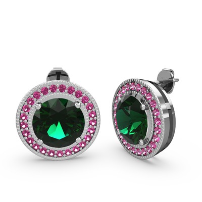Rodolit garnet ve yeşil kuvars 8 ayar beyaz altın küpe
