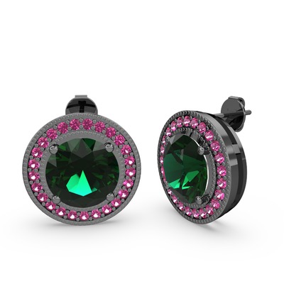 Rodolit garnet ve yeşil kuvars 925 ayar siyah rodyum kaplama gümüş küpe