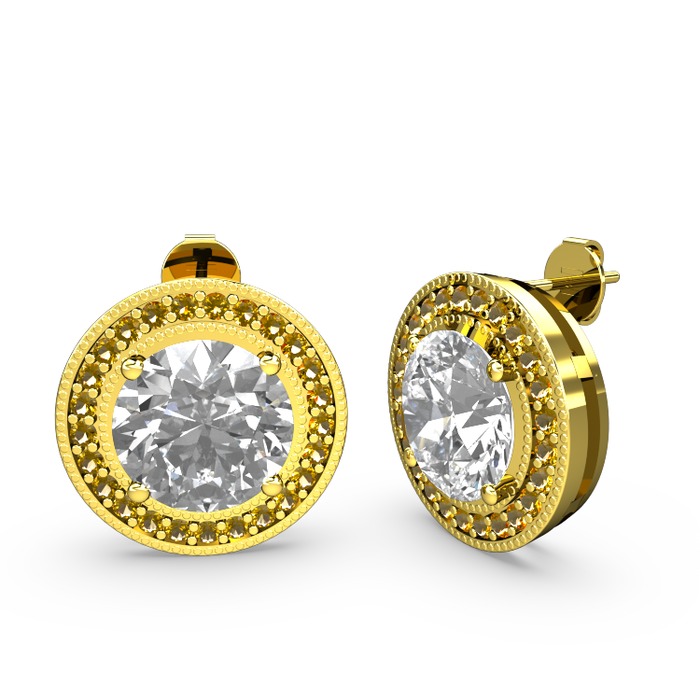 Sitrin ve beyaz zirkon 14 ayar altın küpe