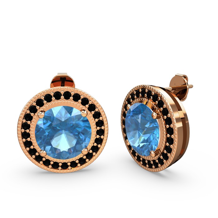 Siyah zirkon ve akuamarin 8 ayar rose altın küpe