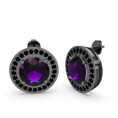 Siyah zirkon ve ametist 925 ayar siyah rodyum kaplama gümüş küpe
