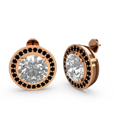 Siyah zirkon ve beyaz zirkon 18 ayar rose altın küpe
