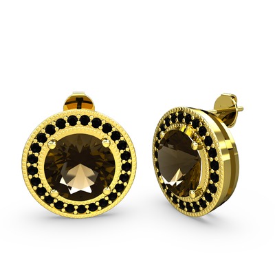 Siyah zirkon ve dumanlı kuvars 14 ayar altın küpe