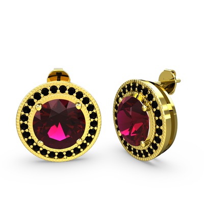 Siyah zirkon ve rodolit garnet 8 ayar altın küpe
