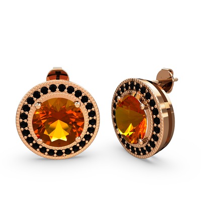 Siyah zirkon ve sitrin 8 ayar rose altın küpe