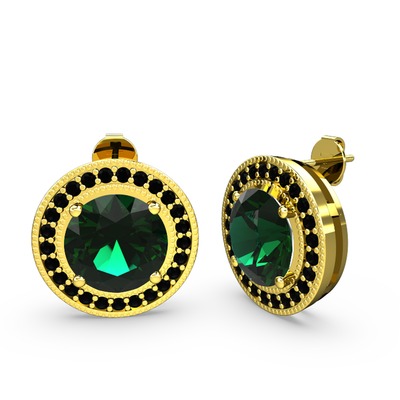 Siyah zirkon ve yeşil kuvars 8 ayar altın küpe