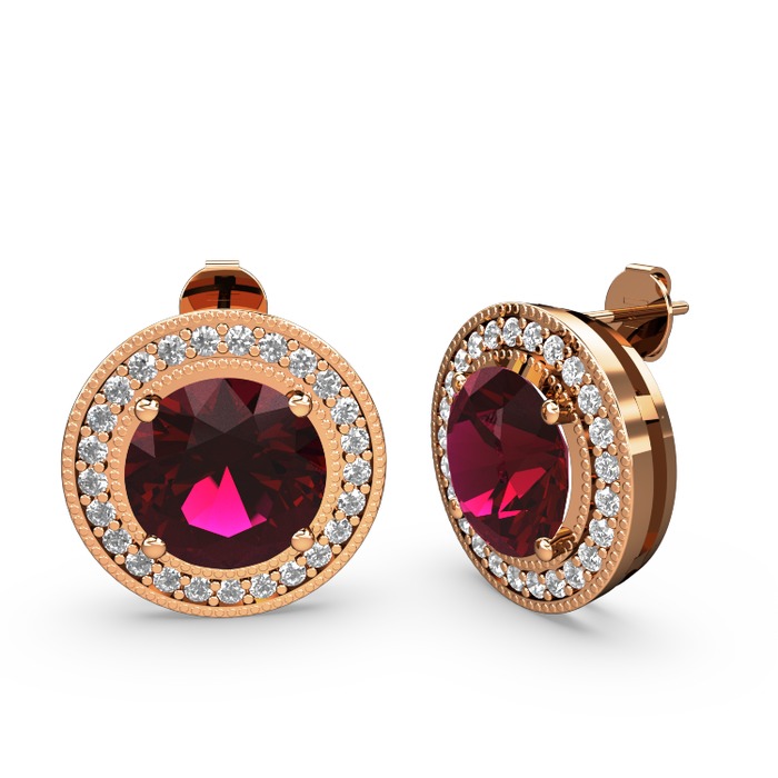 Swarovski ve rodolit garnet 14 ayar rose altın küpe