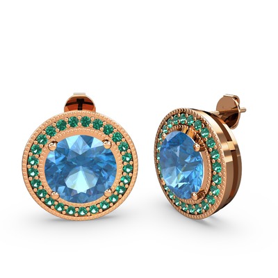 Yeşil kuvars ve akuamarin 14 ayar rose altın küpe