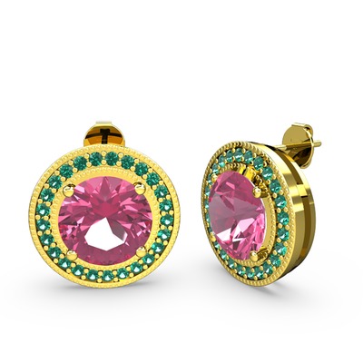 Yeşil kuvars ve pembe kuvars 18 ayar altın küpe