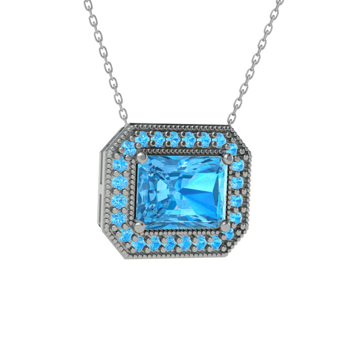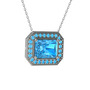 Akuamarin 14 ayar beyaz altın kolye (40 cm beyaz altın rolo zincir)