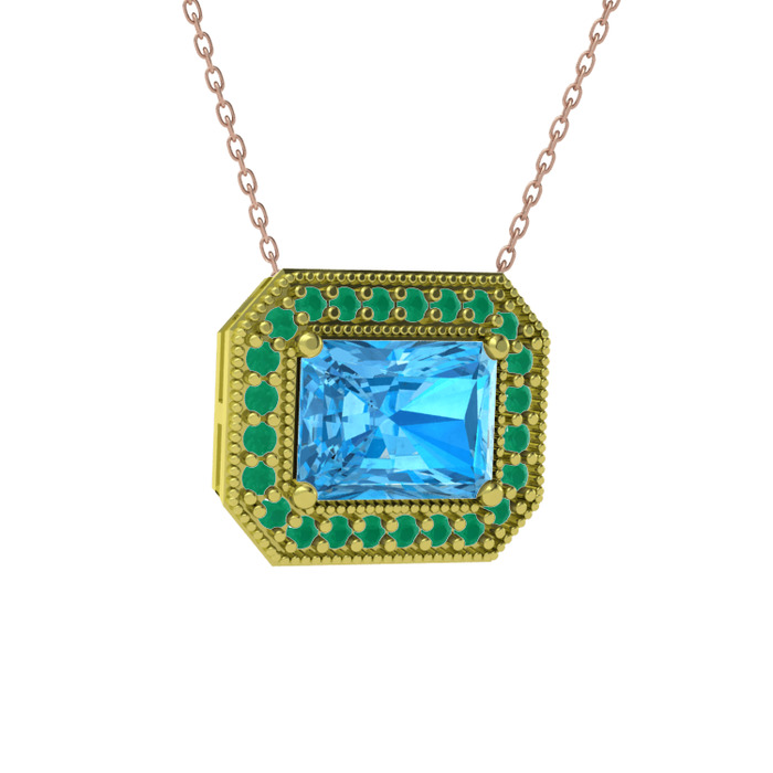 Akuamarin ve kök zümrüt 18 ayar altın kolye (40 cm gümüş rolo zincir)