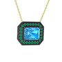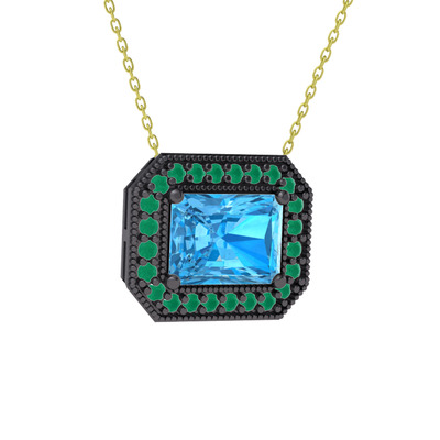 Akuamarin ve kök zümrüt 925 ayar siyah rodyum kaplama gümüş kolye (40 cm altın rolo zincir)