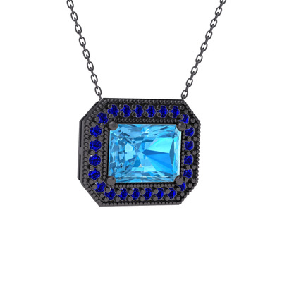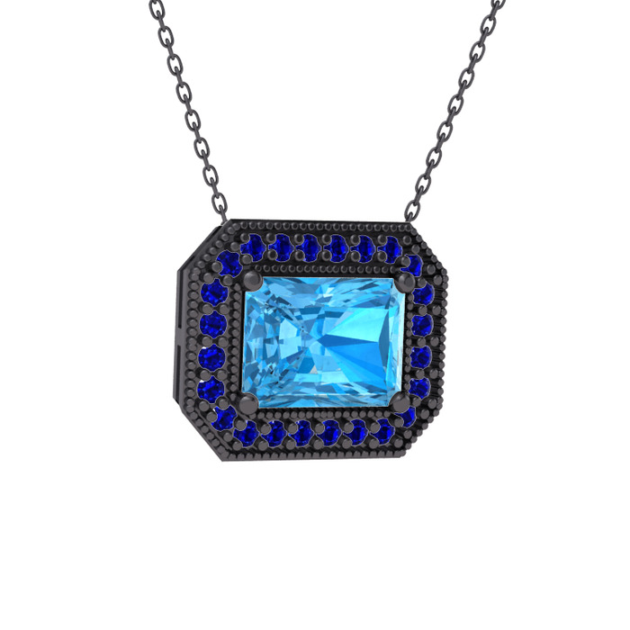 Akuamarin ve lab safir 925 ayar siyah rodyum kaplama gümüş kolye (40 cm gümüş rolo zincir)