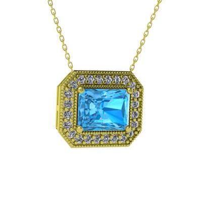 Akuamarin ve pırlanta 14 ayar altın kolye (0.253 karat, 40 cm altın rolo zincir)
