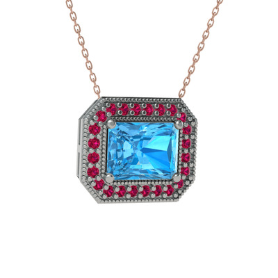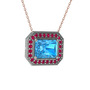 Akuamarin ve rodolit garnet 18 ayar beyaz altın kolye (40 cm gümüş rolo zincir)