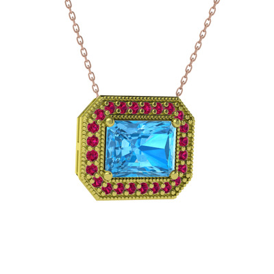 Akuamarin ve rodolit garnet 8 ayar altın kolye (40 cm rose altın rolo zincir)