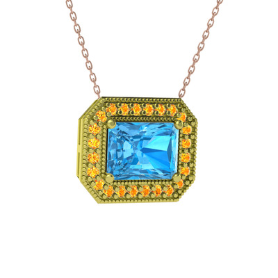 Akuamarin ve sitrin 18 ayar altın kolye (40 cm rose altın rolo zincir)