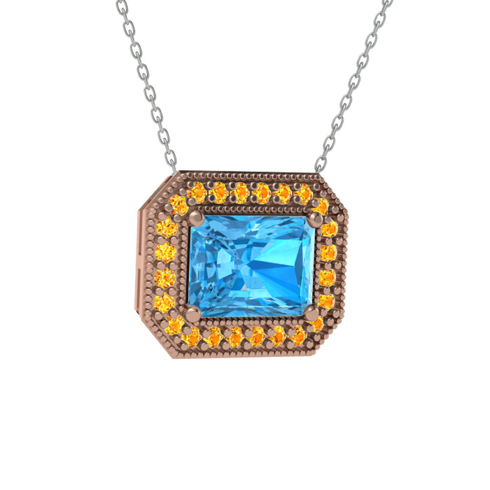 Akuamarin ve sitrin 18 ayar rose altın kolye (40 cm beyaz altın rolo zincir)