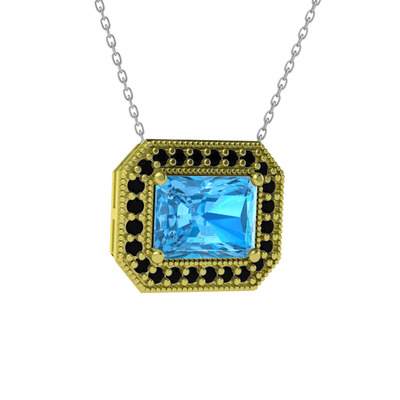 Akuamarin ve siyah zirkon 925 ayar altın kaplama gümüş kolye (40 cm beyaz altın rolo zincir)