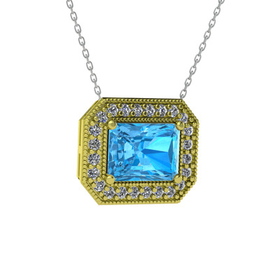 Akuamarin ve swarovski 14 ayar altın kolye (40 cm beyaz altın rolo zincir)