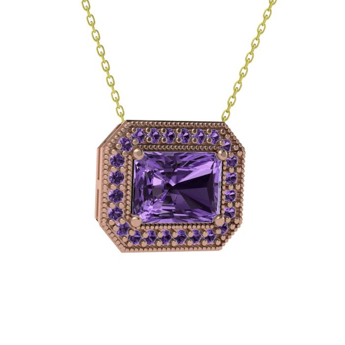 Ametist 14 ayar rose altın kolye (40 cm altın rolo zincir)