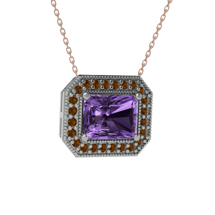Ametist ve dumanlı kuvars 8 ayar beyaz altın kolye (40 cm gümüş rolo zincir)