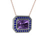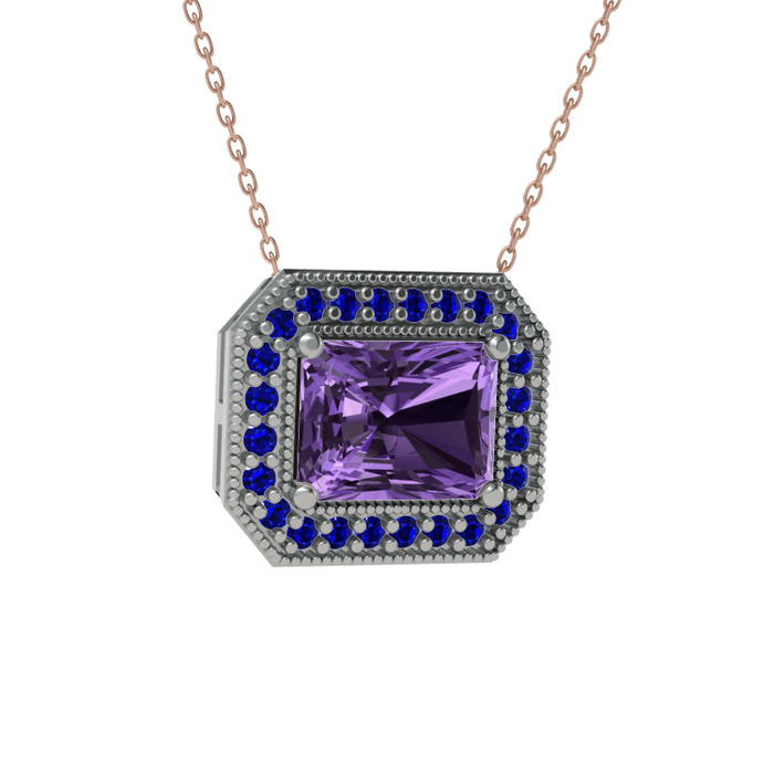 Ametist ve lab safir 925 ayar gümüş kolye (40 cm gümüş rolo zincir)