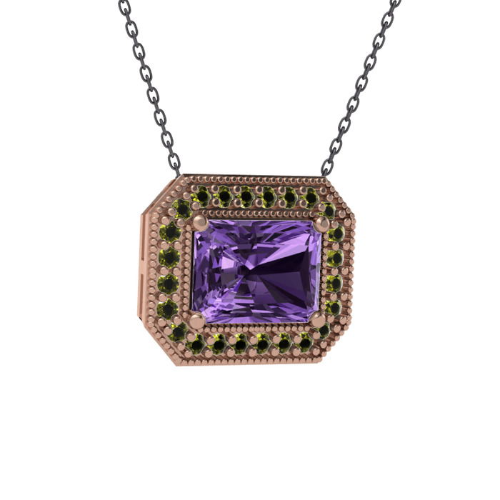 Ametist ve peridot 18 ayar rose altın kolye (40 cm gümüş rolo zincir)