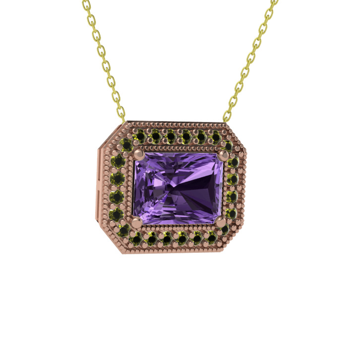 Ametist ve peridot 8 ayar rose altın kolye (40 cm gümüş rolo zincir)
