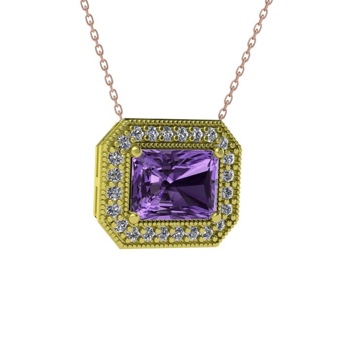 Ametist ve pırlanta 14 ayar altın kolye (0.253 karat, 40 cm gümüş rolo zincir)