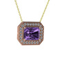 Ametist ve pırlanta 8 ayar rose altın kolye (0.253 karat, 40 cm gümüş rolo zincir)