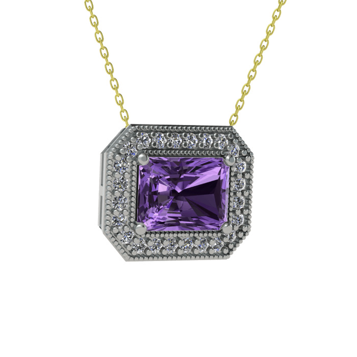 Ametist ve pırlanta 925 ayar gümüş kolye (0.253 karat, 40 cm altın rolo zincir)
