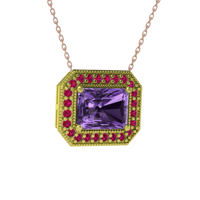 Ametist ve rodolit garnet 8 ayar altın kolye (40 cm gümüş rolo zincir)