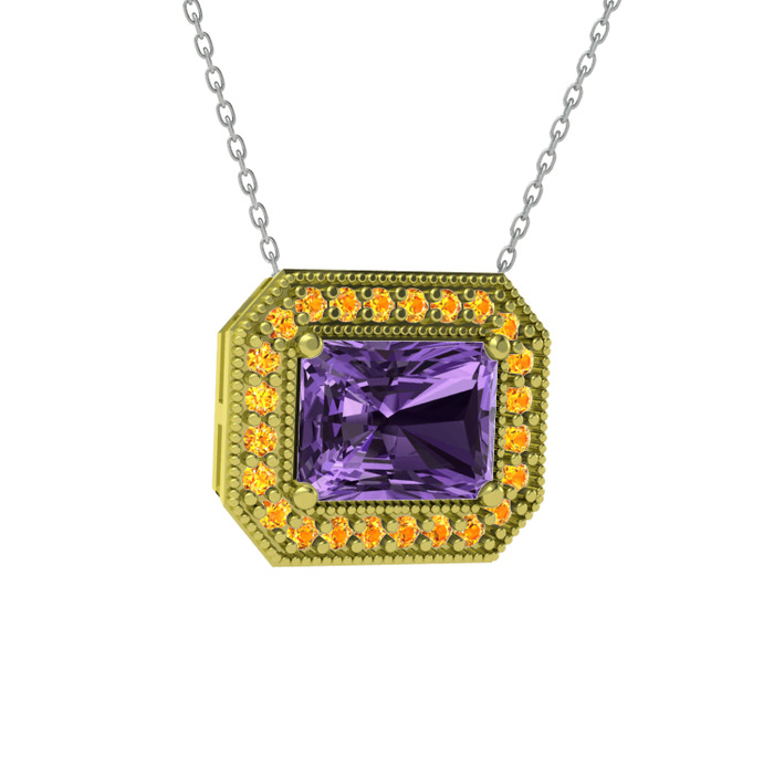Ametist ve sitrin 14 ayar altın kolye (40 cm gümüş rolo zincir)