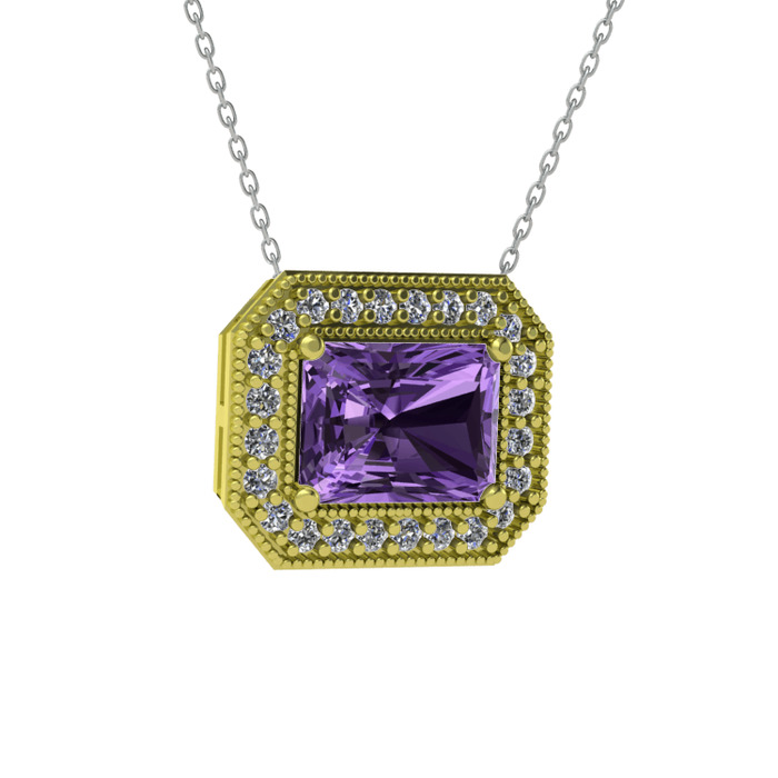 Ametist ve swarovski 14 ayar altın kolye (40 cm beyaz altın rolo zincir)