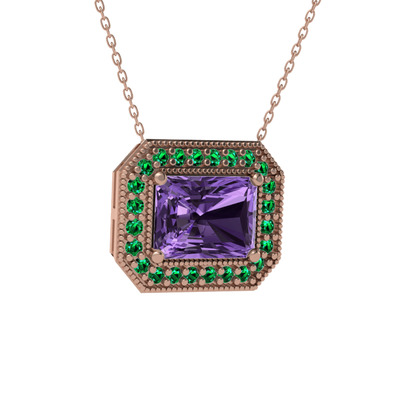 Ametist ve yeşil kuvars 8 ayar rose altın kolye (40 cm rose altın rolo zincir)