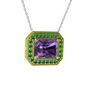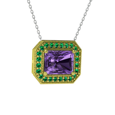 Ametist ve yeşil kuvars 925 ayar altın kaplama gümüş kolye (40 cm beyaz altın rolo zincir)