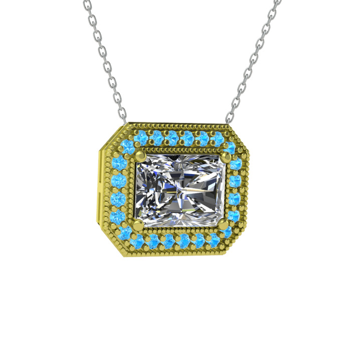Beyaz zirkon ve akuamarin 8 ayar altın kolye (40 cm beyaz altın rolo zincir)