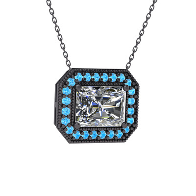 Beyaz zirkon ve akuamarin 925 ayar siyah rodyum kaplama gümüş kolye (40 cm gümüş rolo zincir)