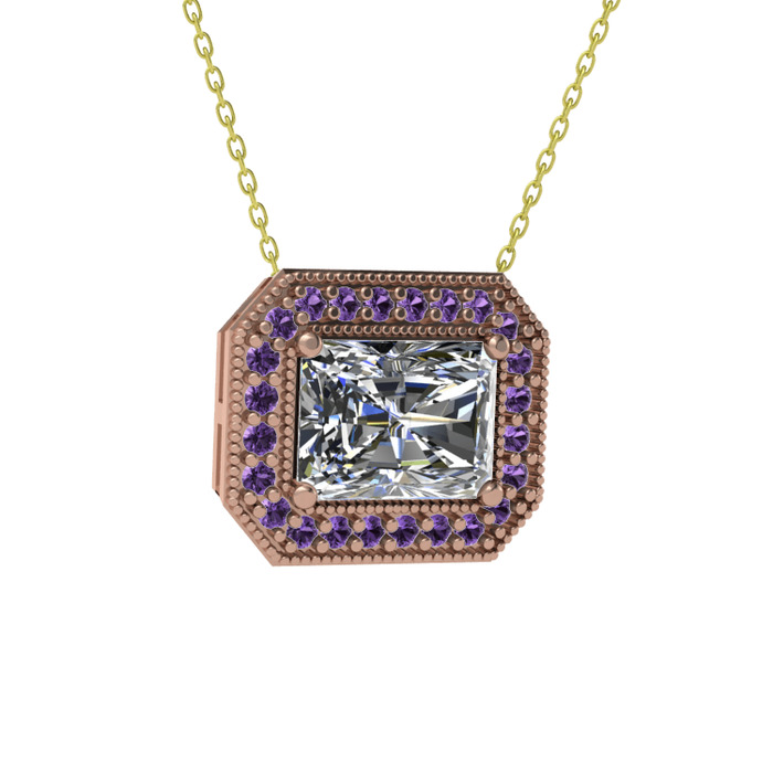Beyaz zirkon ve ametist 14 ayar rose altın kolye (40 cm gümüş rolo zincir)