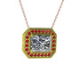 Beyaz zirkon ve garnet 8 ayar altın kolye (40 cm rose altın rolo zincir)