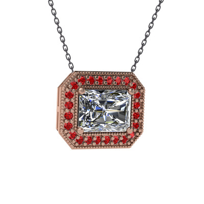 Beyaz zirkon ve garnet 8 ayar rose altın kolye (40 cm gümüş rolo zincir)