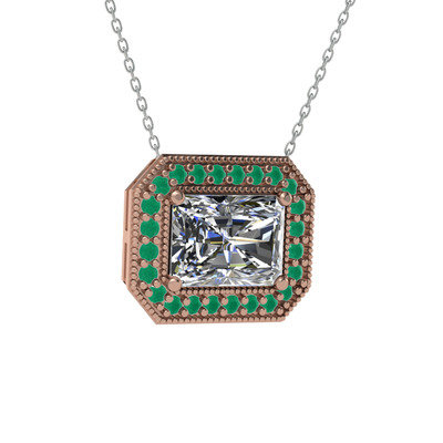 Beyaz zirkon ve kök zümrüt 8 ayar rose altın kolye (40 cm beyaz altın rolo zincir)