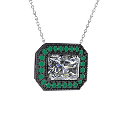 Beyaz zirkon ve kök zümrüt 925 ayar siyah rodyum kaplama gümüş kolye (40 cm beyaz altın rolo zincir)